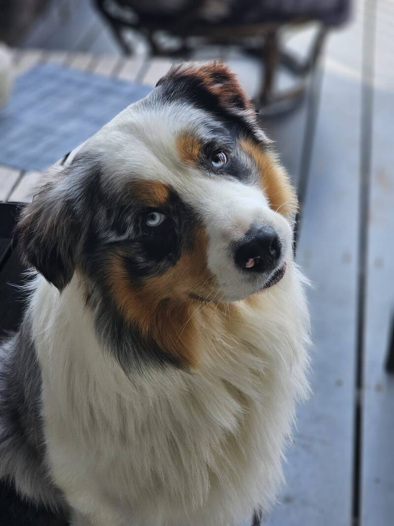 Onze stoere Lucky, met zijn krachtige uitstraling en zijn knalblauwe, gevlekte ogen die meteen opvallen. Achter zijn robuuste look schuilt een gouden karakter: speels, enorm sociaal en altijd in voor vriendschap. Een echte charmeur.
